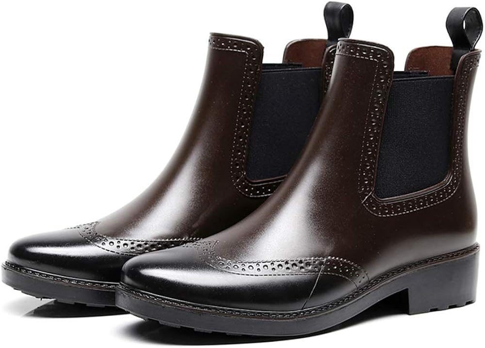 ウィングチップ可愛いレインブーツレインシューズレディースサイドゴア厚底太ヒールローヒール3cm脚長焦・・・