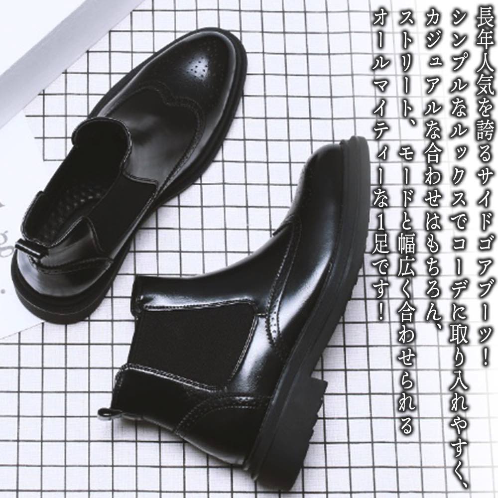 ブーツ メンズ ウィングチップサイドゴアブーツ 靴 黒 軽い 秋 冬 ジッパー 幅広 防水 防寒 レ・・・