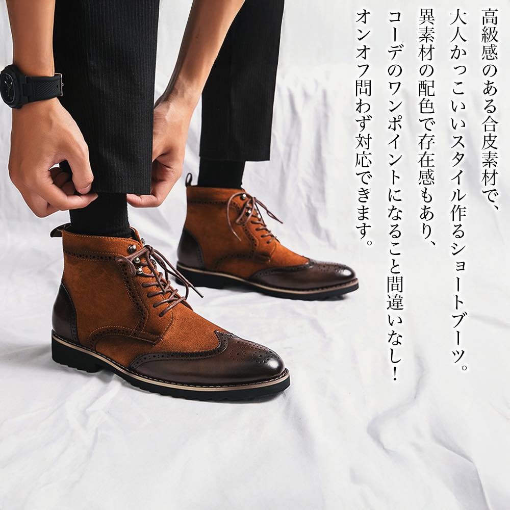 【\クーポン利用で20%OFF!/】 ブーツ メンズ 異素材ウィングチップブーツ 防水 軽い 洗える・・・