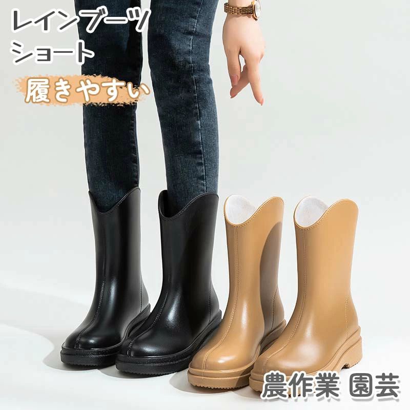 レインブーツ ショート レディース レインシューズ 春 夏 無地 ブラック ベージュ 滑らない 快適・・・