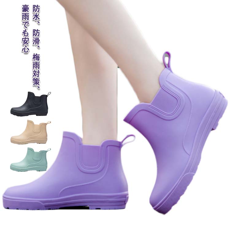防水 雨靴 美脚 靴 痛くない 滑りにくい 痛くない レインシューズ 雨靴 ショートブーツ 黒 レイ・・・