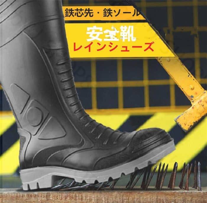 安全靴 レインシューズ 作業靴 メンズ ロング丈レインブーツ 防水 長靴 黒 ブラック 通勤 カジュ・・・