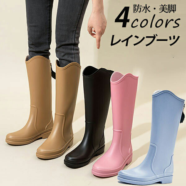 4色用意 レインブーツ レディース ロング レインシューズ おしゃれ 長靴 雨靴 ロングブーツ ジョ・・・