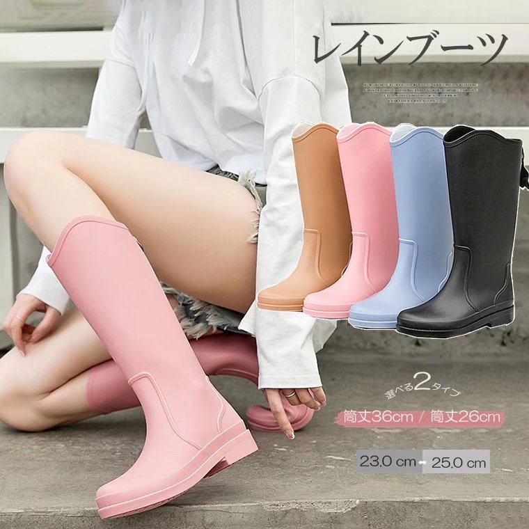 雨の日もオシャレに!レディース レインブーツ 選べる2サイズ レインシューズ 雨靴 おしゃれ ロング・・・