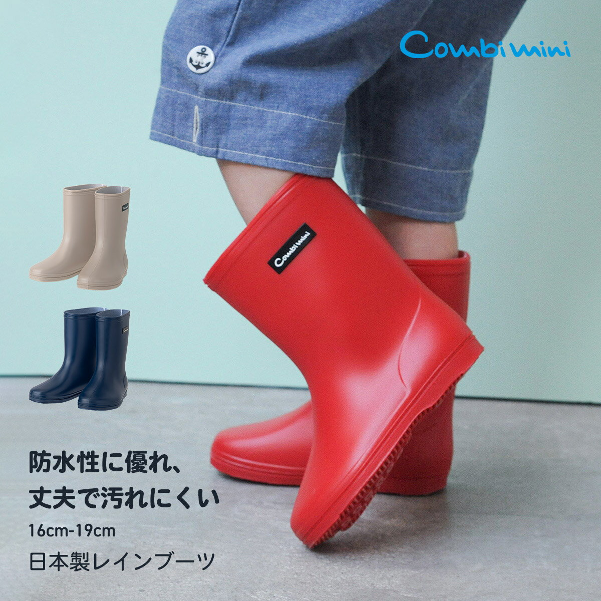 【20%OFF】《コンビミニ》日本製レインブーツ : 男の子 女の子 16cm 17cm 18cm ・・・