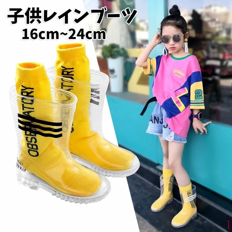 送料無料 子供レインブーツ レインシューズ 梅雨対策 長靴 サメ ドット 透明 ジュニア 防水 雨靴・・・
