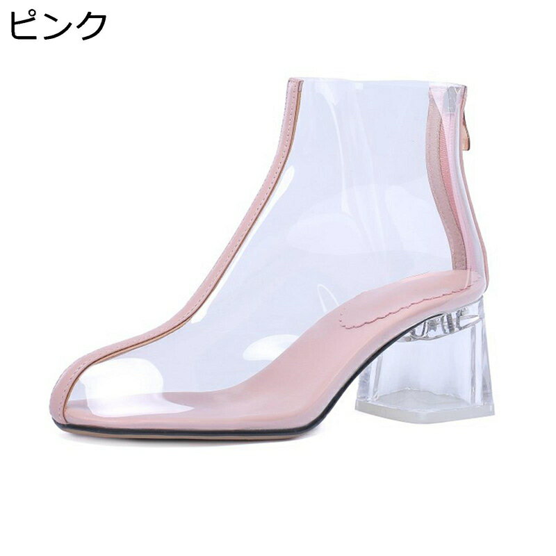 大きいサイズ 透明 サンダルブーツ レディース チャンキーヒール スクエアトゥ バックジップ クリア・・・