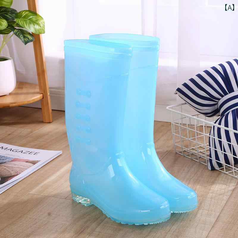 透明 レインブーツ スタイル 裏地なし 布 オーバー シューズ ウォーター ブーツ レディース ハイ・・・