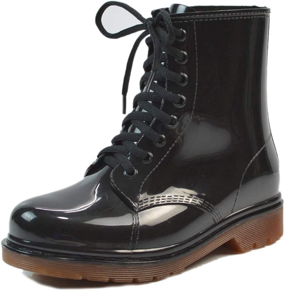 レインブーツ完全防水ショートブーツレディース雨靴ハイカットレースアップ編み上げ厚底滑り止めワークブー・・・