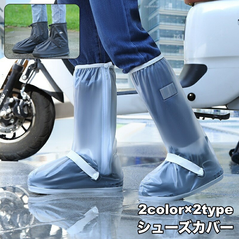 送料無料 シューズカバー レインシューズ 靴カバー ロング丈 ミディアム丈 ブーツタイプ 面ファスナ・・・