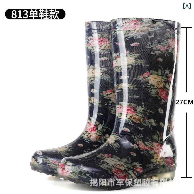 レインシューズ レディース 防水 長靴 中筒 透明 花柄 厚底 滑り止め 厨房 работ 保温 春・・・