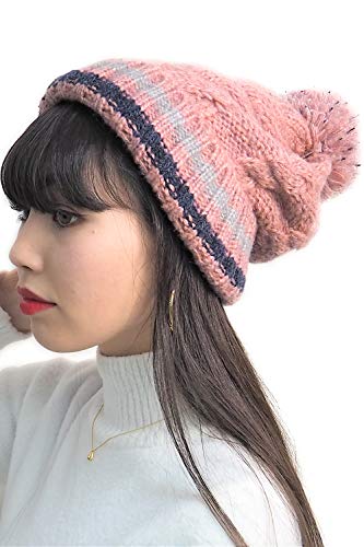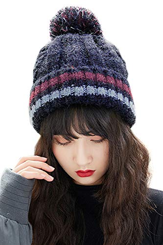 [ROXY BLUE] ニット帽 ボンボン ポンポン レディース 裏ボア 裏起毛 韓国風 防寒 太編・・・