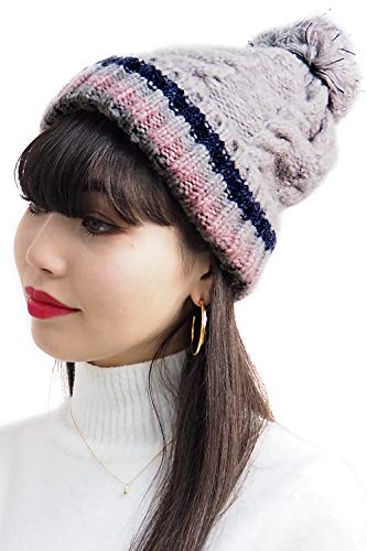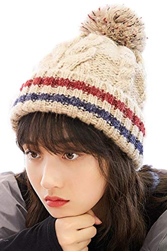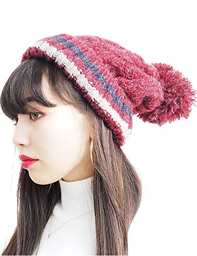 [ROXY BLUE] ニット帽 ボンボン ポンポン レディース 裏ボア 裏起毛 韓国風 防寒 太編・・・