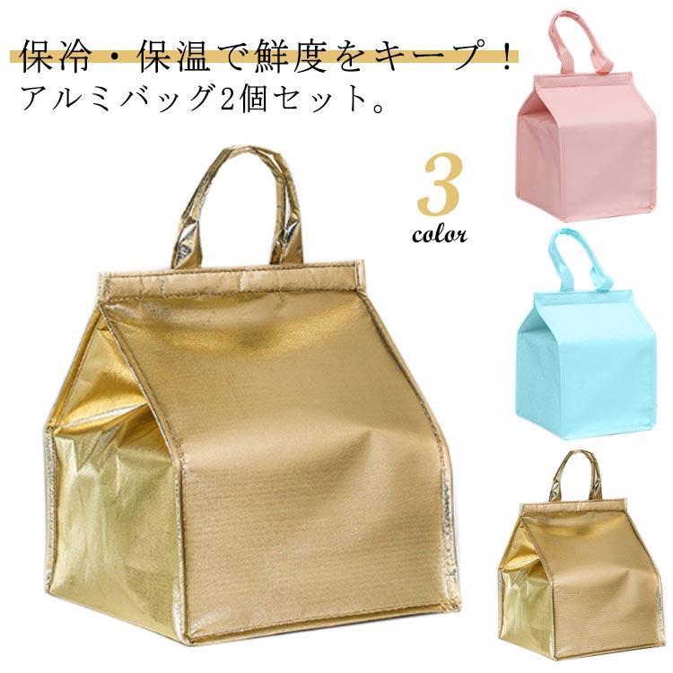 買い物 【2個セット】保冷バッグ アルミバッグ 弁当 アウトドア コンパクト シンプル ケーキ クー・・・