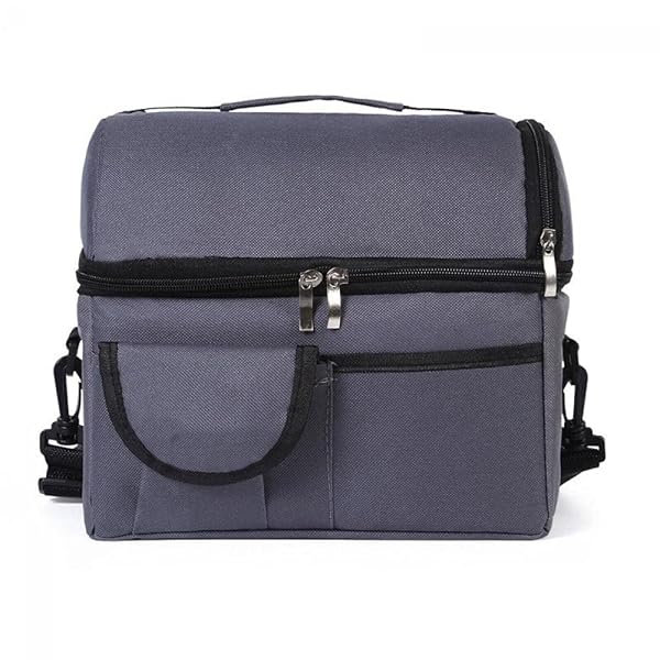 ジャンボ2段ランチボックス/お弁当箱 【1.3L ブラック】 大型 男性向け 入れ子収納 保冷バッグ・・・
