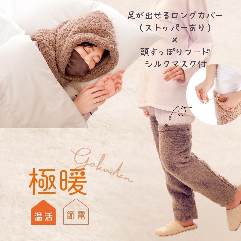極暖 頭すっぽりフード シルク マスク 付き ・ 足が出せるロングカバー(ストッパー付き) セット ・・・