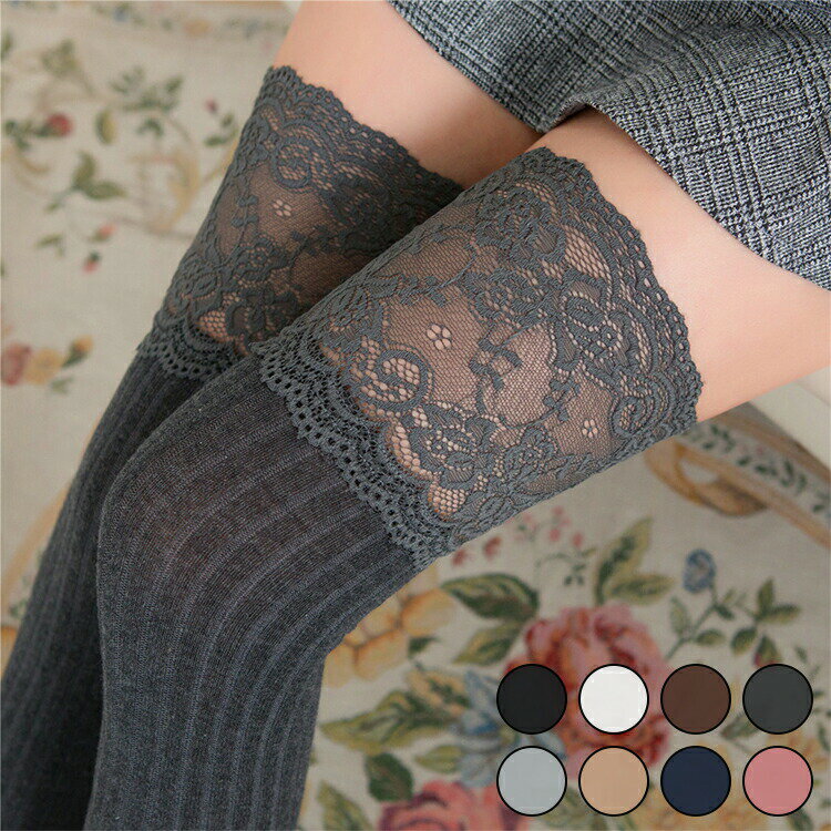 リーズナブルで高品質なニーハイ ホワイトレース オーバーニー オーバーニーソックス ピンク ニーハイ・・・