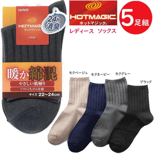 5足組 まとめ買い グンゼ ホットマジック クルー丈 ソフト口ゴム仕様 平編み アメリブ 24時間消・・・