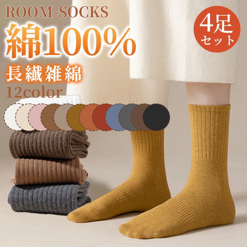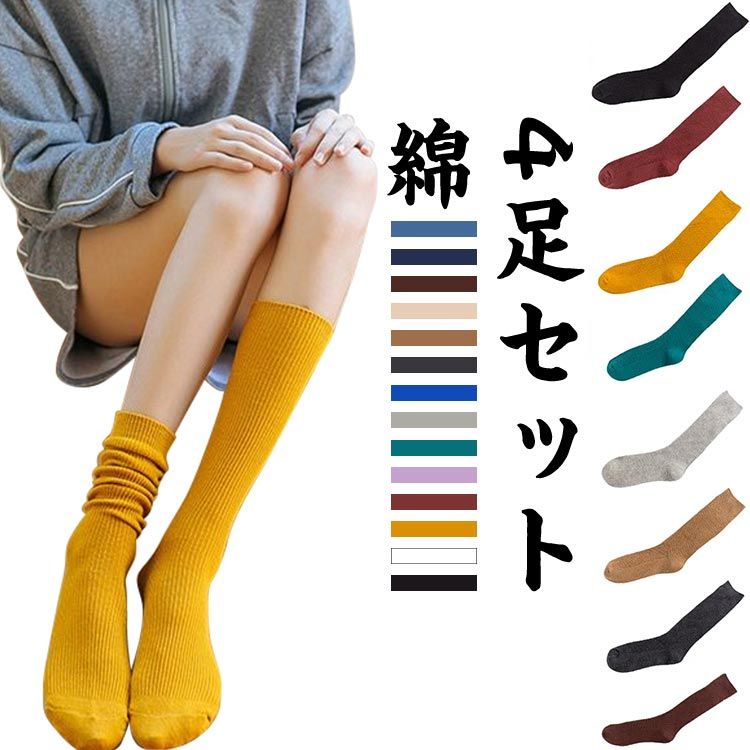 靴下 4足セット ソックス ハイソックス 靴下 秋 冬 コットン 綿 冷え取り靴下 ストッキング く・・・
