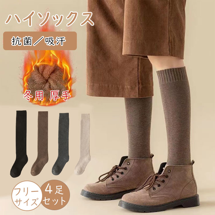 最大20% 4足セット あったか靴下 レディース ハイソックス 冬用 厚手 裏起毛 ソックス 無地 ・・・