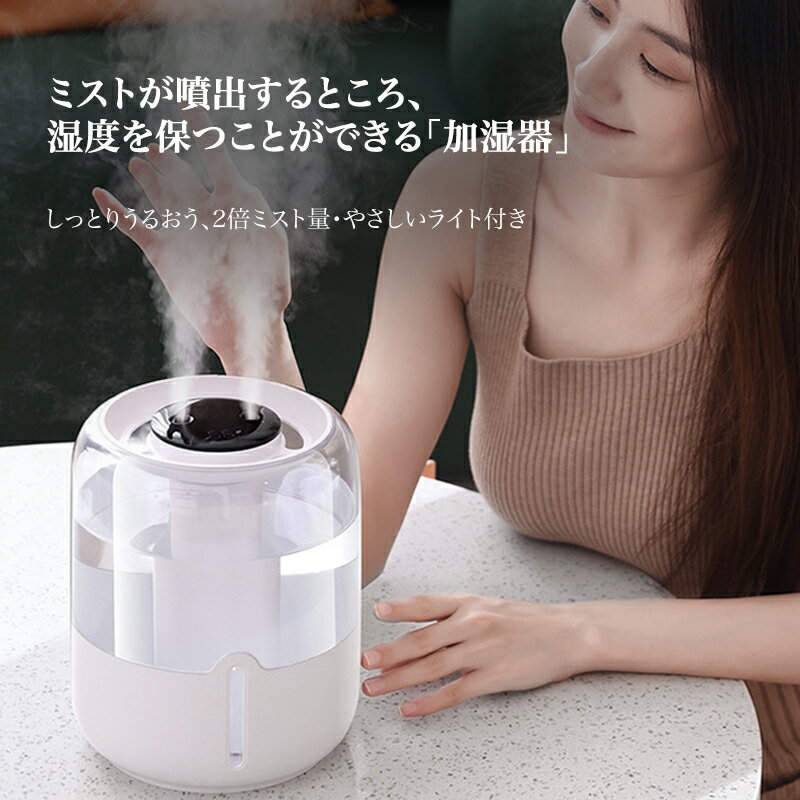 【新作】加湿器 卓上 オフィス 超音波加湿器 3噴霧口 大容量 超音波式 加湿器 デュアル 3L 大・・・