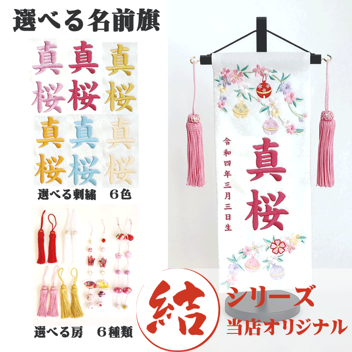 名前旗 女の子 名入れ旗 タペストリー 名前旗 台付 結シリーズ 鈴桜 白 小 刺繍 当店オリジナル・・・