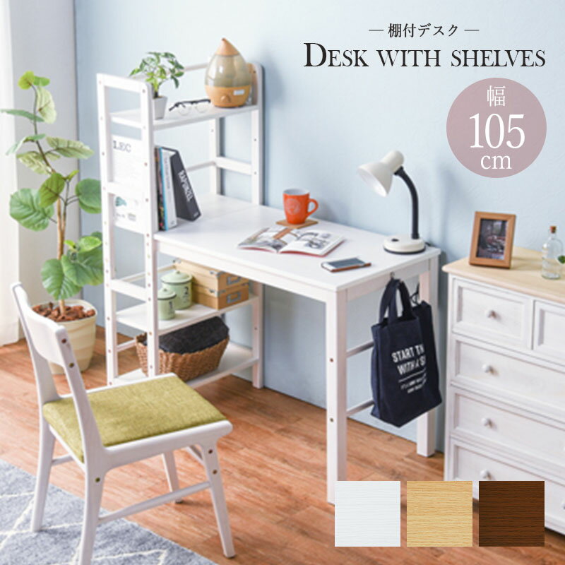 収納デスク 棚 幅105cm デスク 机 つくえ パソコンデスク PCデスク テーブル 子供用 勉強・・・