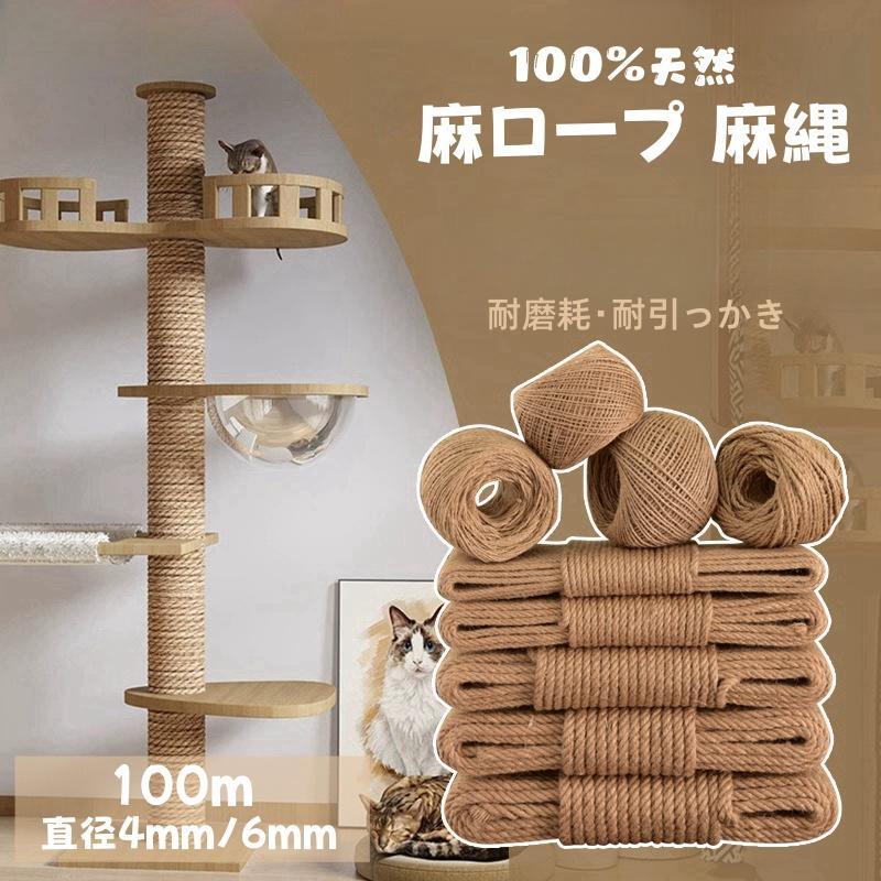 麻ロープ 麻縄 天然繊維 ジュート 4mm 6mm 長さ100m 麻紐 手作り DIY 園芸 荷造り・・・