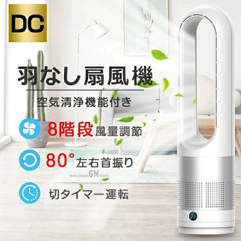 羽根なし扇風機 静音設計 冷暖房対応 サーキュレーター機能付き 冷暖タイプ 扇風機 自動首振り 8段・・・