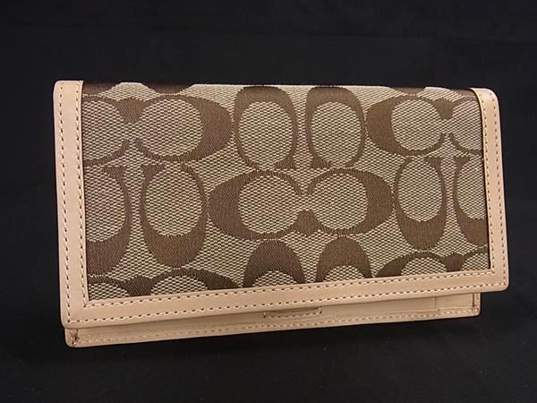 COACH コーチ 長財布 レディース ホック式 手帳カバー付 レディース シグネチャー ブラウン ・・・