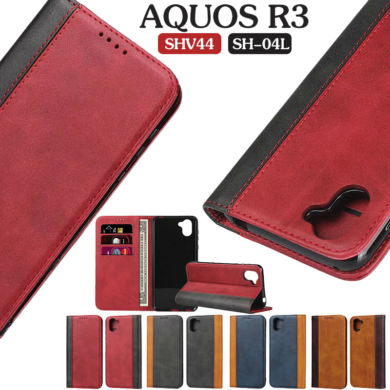 AQUOS R3 SH-04Lケース 手帳 マグネット式 AQUOS R3手帳ケースPU 合皮 カー・・・