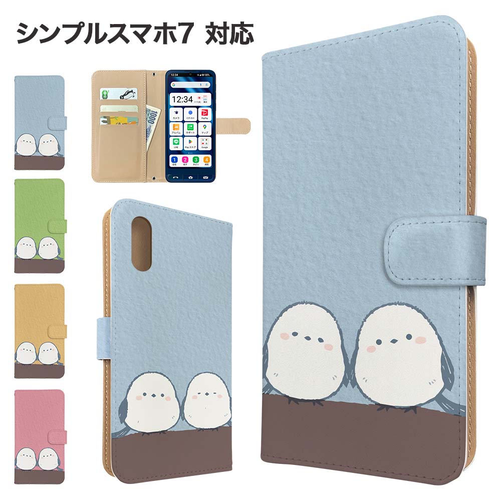 シンプルスマホ7 ケース 手帳型 ケース A404SH スマホケース カバー アニマル シマエナガ ・・・