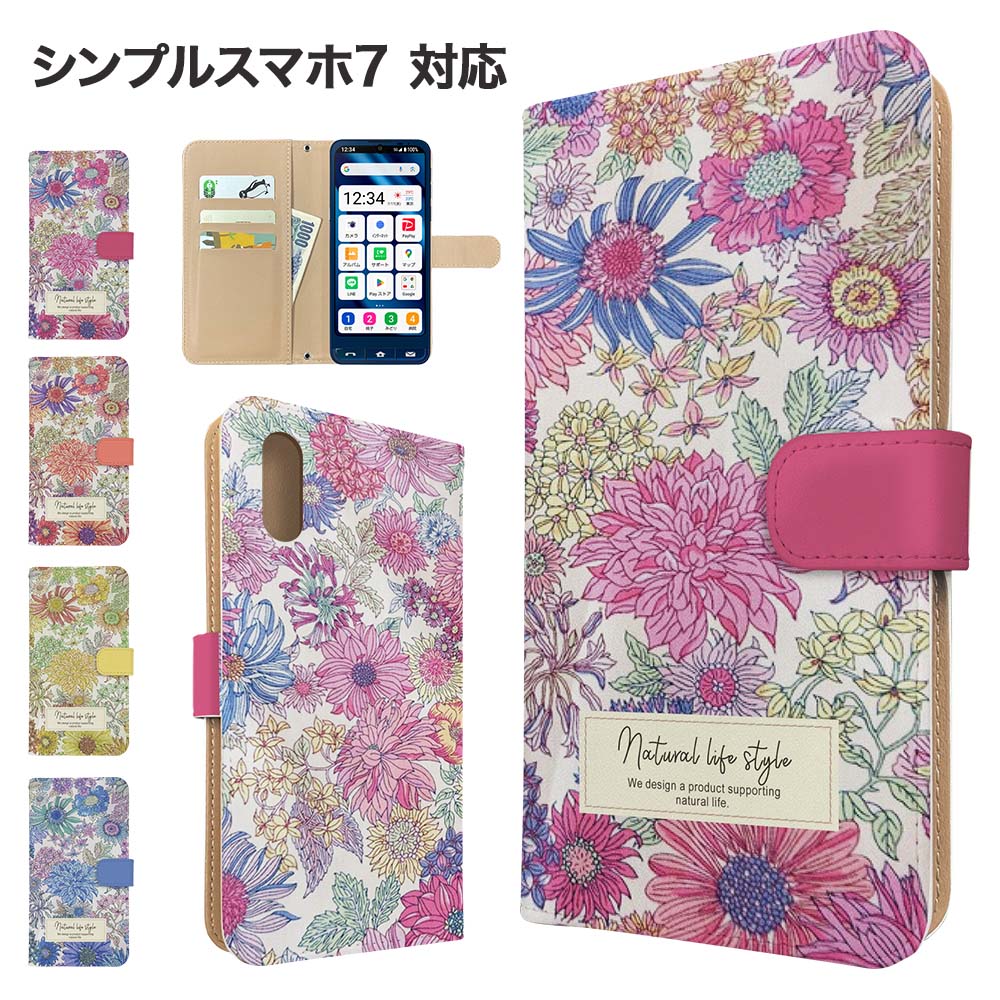 シンプルスマホ7 ケース 手帳型 ケース A404SH スマホケース カバー 花柄 フラワー スマホ・・・