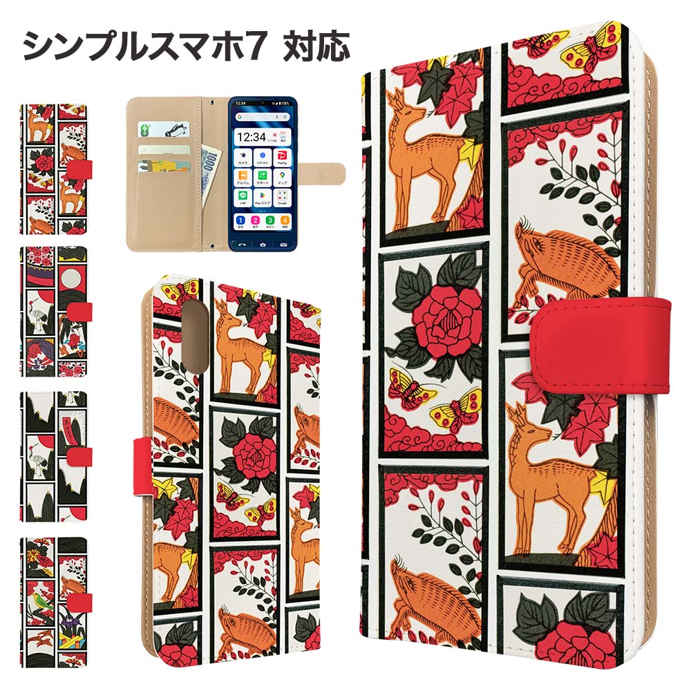 シンプルスマホ7 ケース 手帳型 ケース A404SH スマホケース カバー 花札 和柄 スマホカバ・・・