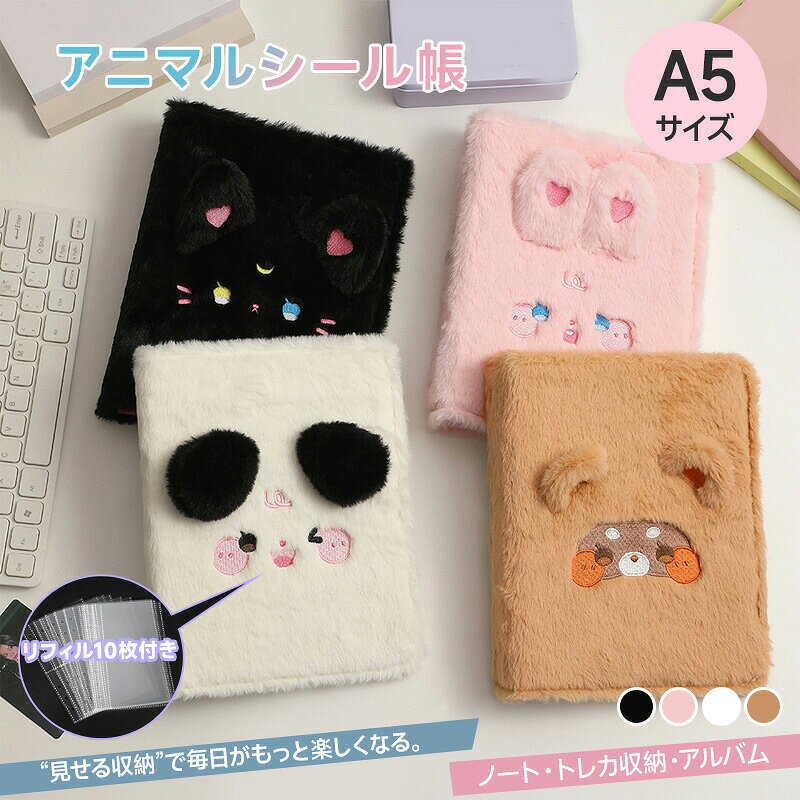 【送料無料・即納】シール帳 A5 バインダー シール リフィル かわいい アニマル もこもこ 6穴 ・・・