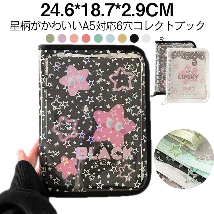 A5 カバーのみ バインダー 星柄 手帳カバー A5 ケース 6穴 グッズ 推し活 ジッパー付き ク・・・