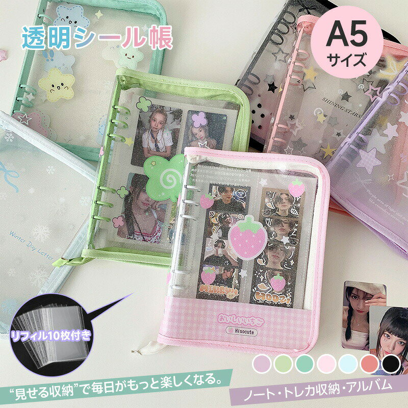 A5サイズ 6穴 シール帳 クリア 透明 バインダー 推し活 キラキラ トレカホルダー アイドル チ・・・