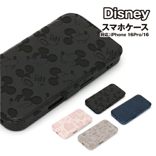 送料無料 ディズニー iPhone16/16Pro用 ガラスフリップケース PG-D24A-BGF0・・・