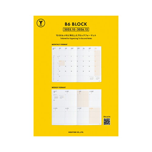 【10%OFFクーポン】ハイタイド 2026年版 手帳 Yタイプダイアリー B6ブロック ウィークリ・・・
