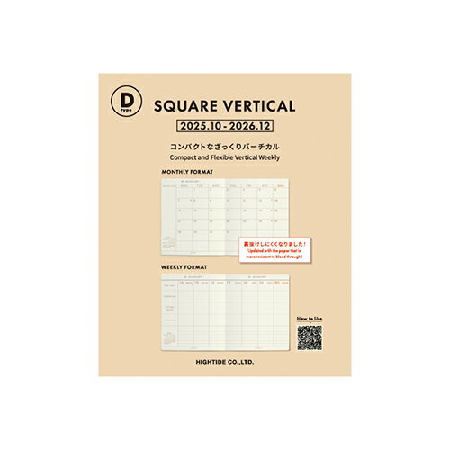 【10%OFFクーポン】ハイタイド 2026年版 手帳 Dタイプダイアリー スクエア バーチカル ウ・・・