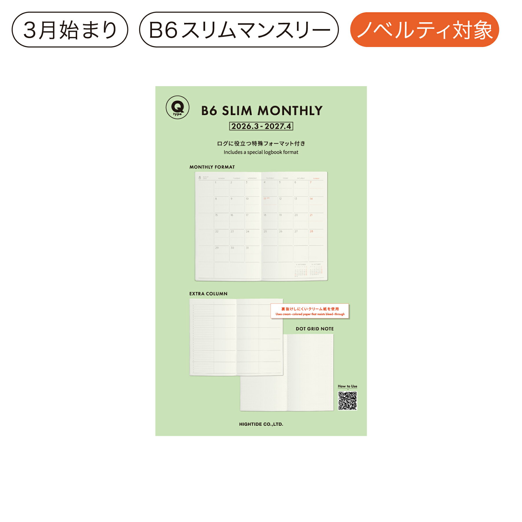 ハイタイド 手帳 2026 / Qタイプ リフィル / B6 スリム マンスリー / 2026年3月・・・