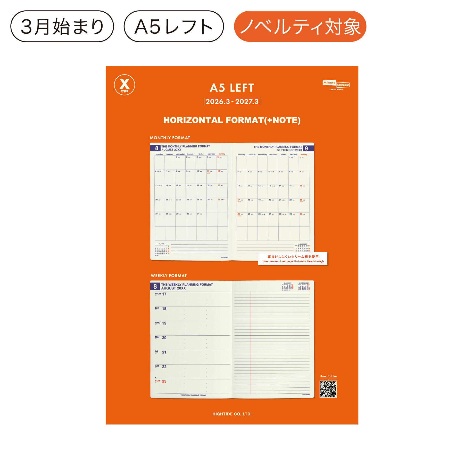 ハイタイド 手帳 2026 / Xタイプ リフィル[直営店限定]/ A5 週間レフト / 2026年・・・