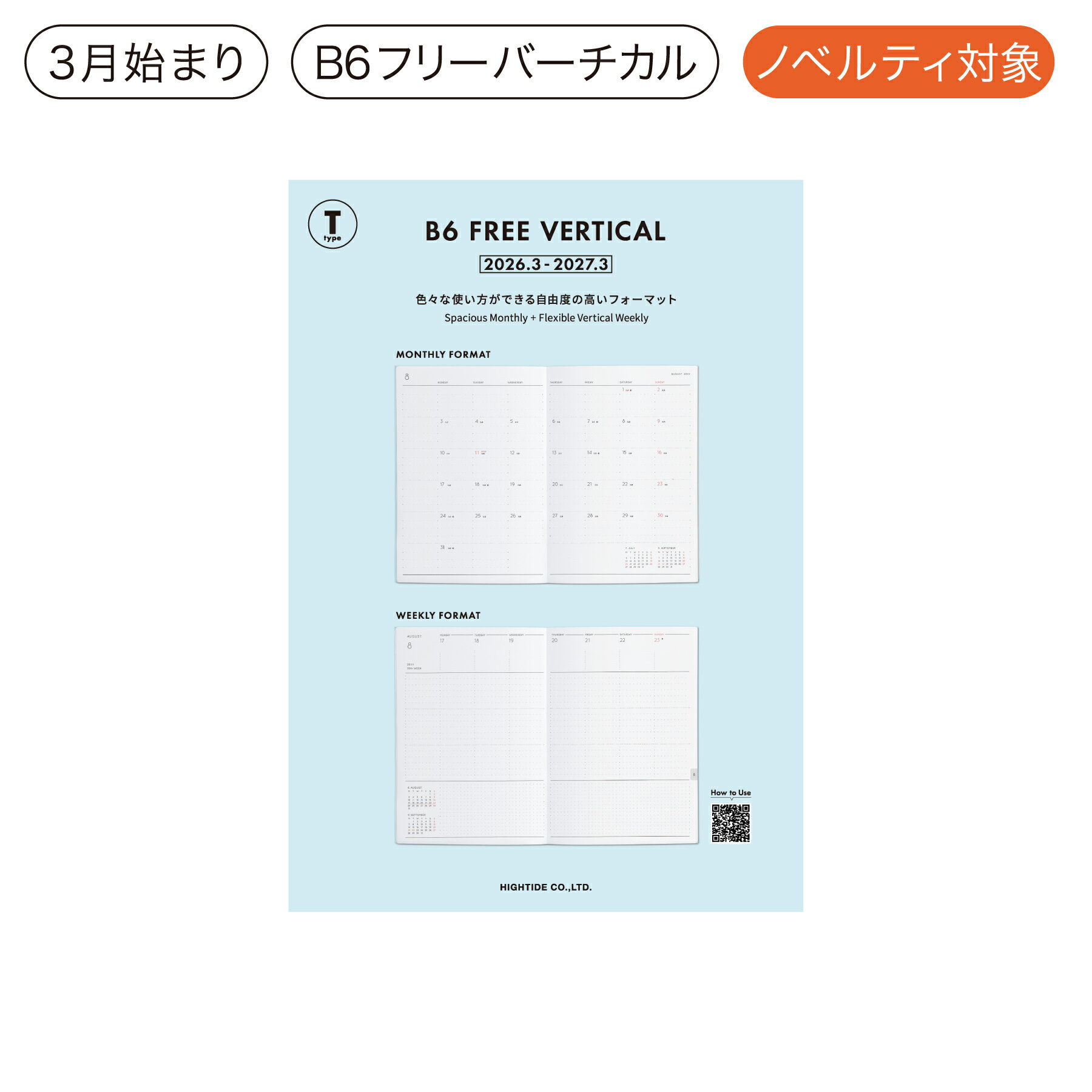 ハイタイド 手帳 2026 / ケイティー / B6 フリー 週間バーチカル / 2026年3月始ま・・・