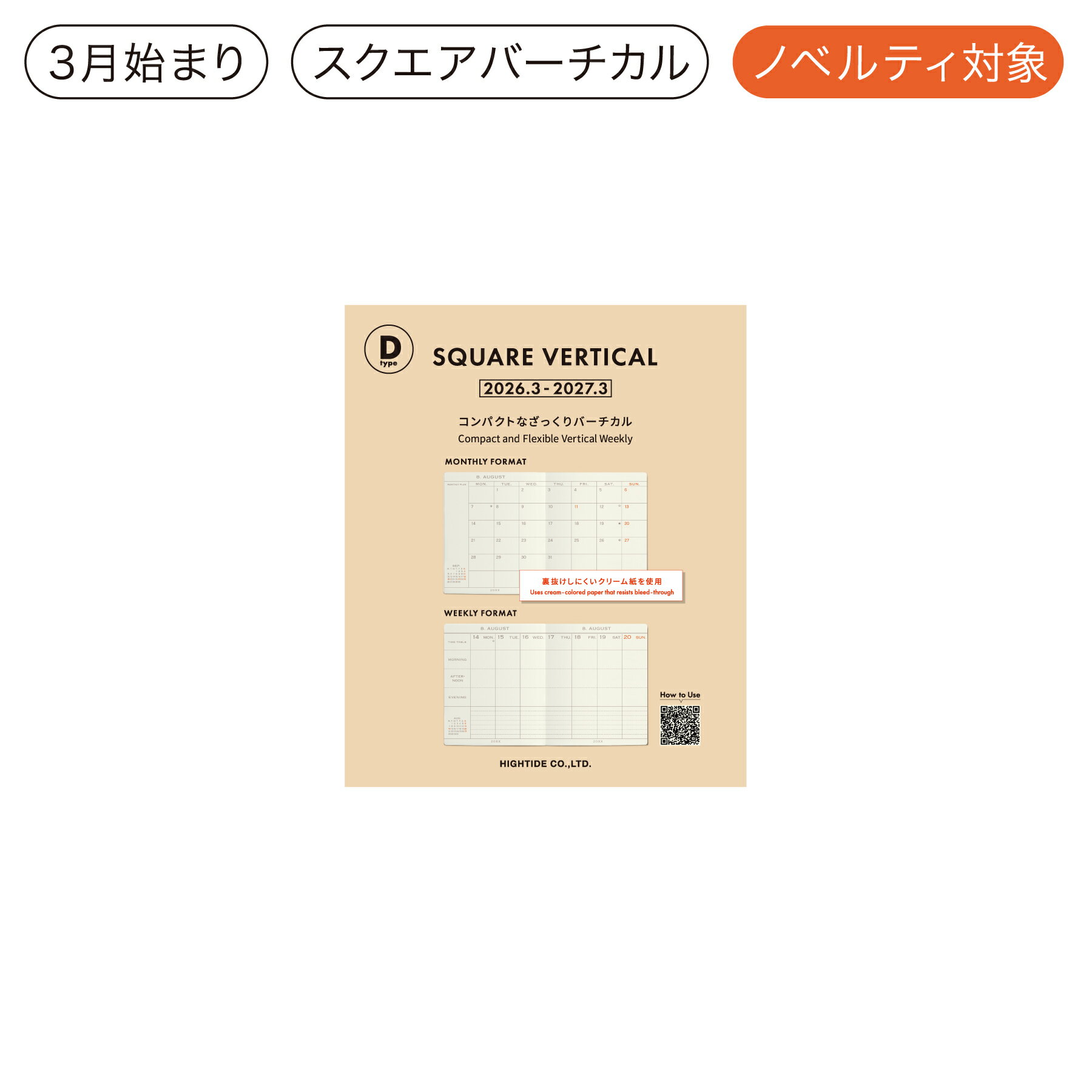 ハイタイド 手帳 2026 / Dタイプ リフィル[直営店限定]/ スクエア 週間バーチカル / 2・・・
