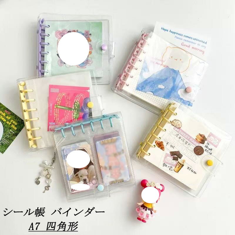 【リフィル10枚付属】 シール帳 バインダー 6穴 A7 四角形 はがせる 女の子 手帳 透明 クリ・・・