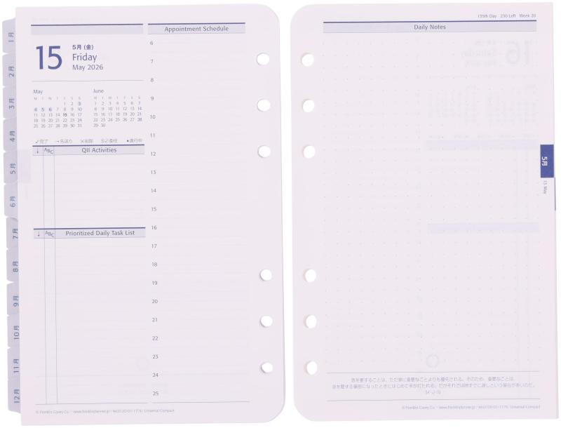 フランクリン・プランナー ユニバーサル・ウィークリー・リフィル 12ヶ月版 2026年1月始まり