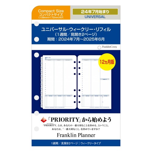 フランクリン・プランナー ユニバーサル ウィークリー リフィル 12ヶ月版 2024年7月始まり コ・・・