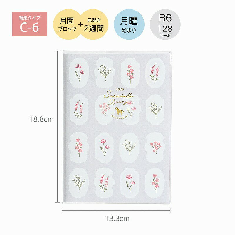 【期間限定P2倍】【2026年手帳/2026年1月始まり】スケジュール帳 ダイアリー 週間 月曜始ま・・・