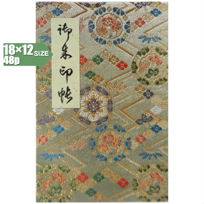 【蛇腹式48p・18×12cmサイズ】御朱印帳(朱印帳)カバー付き・西陣織高級金襴・幾何花菱文様地「・・・