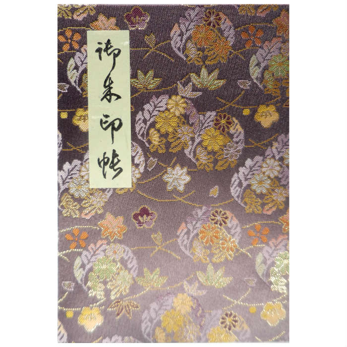 【小さめ蛇腹式】御朱印帳(朱印帳)カバー付き 西陣織高級金襴 「菊の葉丸紋と桜楓松竹梅柄」蛇腹式・4・・・